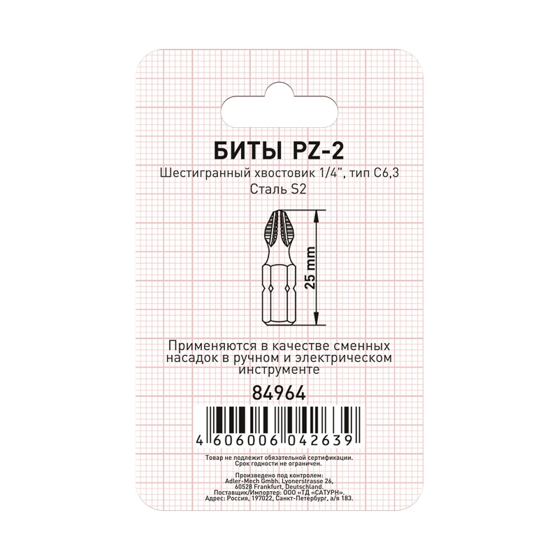 Применяются в качестве сменных насадок в ручном и электрическом инструменте. Прочная инструментальная молибденовая сталь S2. Производство методом холодной ковки. Магнитный шлиц. Шестигранный хвостовик 1/4″С