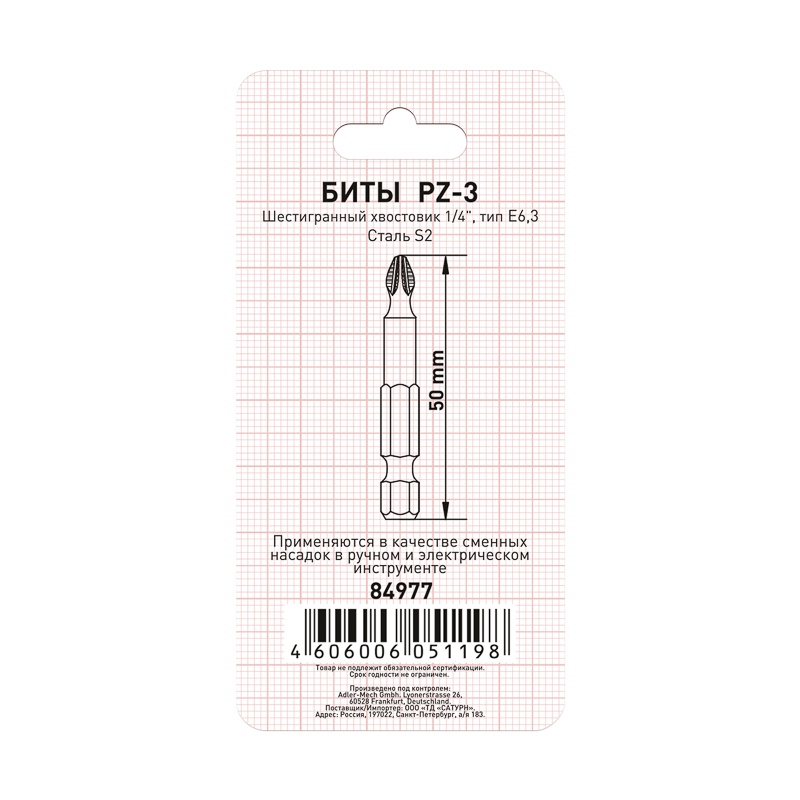 Применяются в качестве сменных насадок в ручном и электрическом инструменте. Прочная инструментальная молибденовая сталь S2. Производство методом холодной ковки. Магнитный шлиц. Защитный пластиковый слой для предотвращения налипания шурупов на хвостовик. Шестигранный хвостовик 1/4″Е