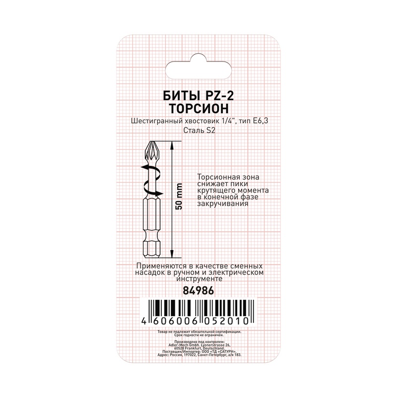 Применяются в качестве сменных насадок в ручном и электрическом инструменте. Хроммолибденовая сталь S2. Производство методом холодной ковки. Высокая твердость и износостойкость. Крестовой, магнитный шлиц Pozi. Торсионная зона на бите предотвращает повреждение шлица, гасит пиковые нагрузки на электроинструмент.