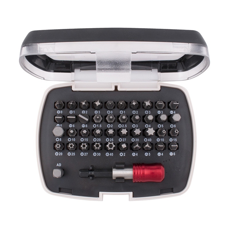 Применяются в качестве сменных насадок в ручном и электрическом инструменте. Хроммолибденовая сталь S2. Производство методом холодной ковки. Высокая твердость и износостойкость. Намагниченные. Комплектация: магнитный держатель 60 мм, адаптер для торцевых головок, крестовой шлиц Phillips (PH-0, PH-1, PH-2, PH-3), крестовой шлиц Pozi driv (PZ-0, PZ-1, PZ-2, PZ-3), плоский шлиц (SL-3, SL-4, SL-5, SL-6, SL-8), шестигранный шлиц (HX-1.5, HX-2, HX-2.5, HX-3, HX-4, HX-5, HX-6, HX-8), Torx шлиц (TX-10, TX-15, TX-20, TX-25, TX-27, TX-30, TX-40), защищенный Torx шлиц (TXH-10, TXH-15, TXH-20, TXH-25, TXH-27, TXH-30, TXH-40), квадратный шлиц (SQ-2), трехлопастный шлиц (TW-4, TW-5), вилочный шлиц (DP-4, DP-6).