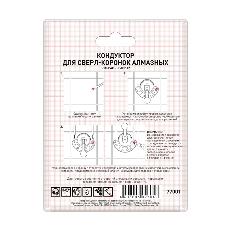 Используется в качестве направляющей для точного позиционирования алмазной коронки на засверливаемой поверхности.