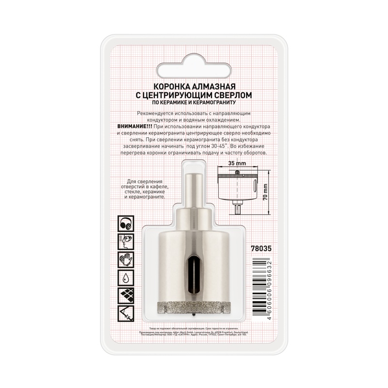 Применяются для сверления отверстий в кафеле, стекле, в изделиях из керамики и керамограните.