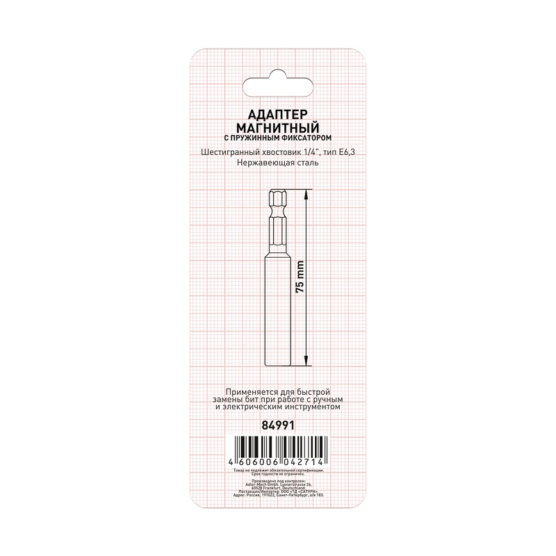 Используется для быстрой замены бит при работе с ручным и электрическим инструментом. Дополнительный пружинный фиксатор. Нержавеющая сталь. Шестигранный хвостовик 1/4″ Е.