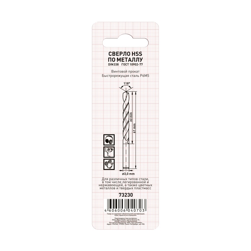 Сверло по металлу Trigger 73230 Р6М5 3,0 мм (уп. 2 шт.)