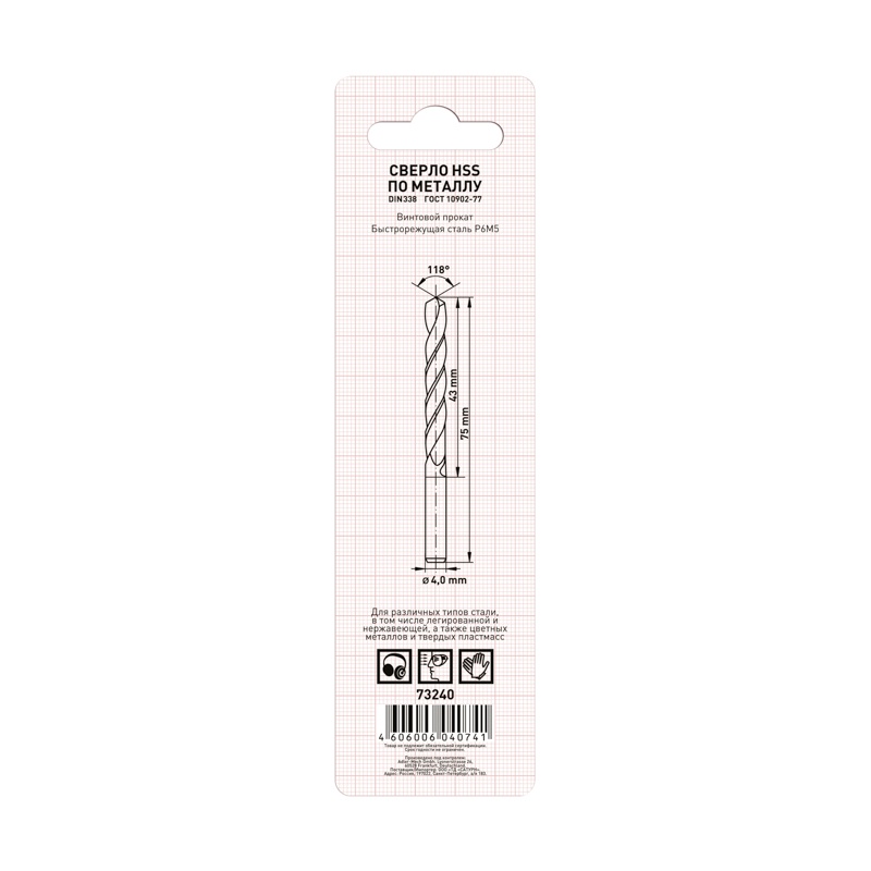 Сверло по металлу Trigger 73240 Р6М5 4,0 мм (уп. 2 шт.)