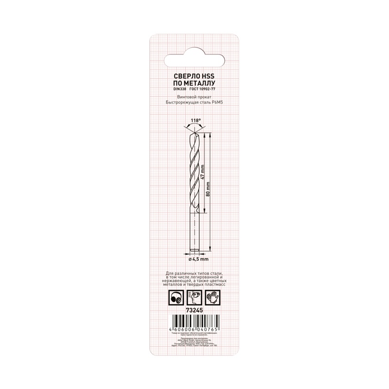 Сверло по металлу Trigger 73245 Р6М5 4,5 мм (уп. 2 шт.)