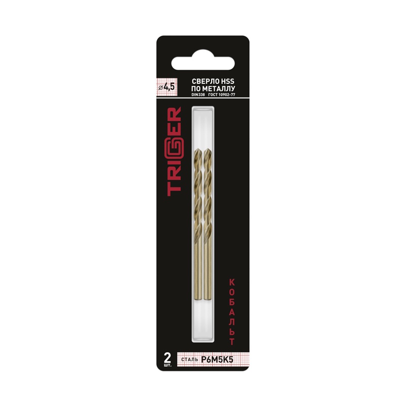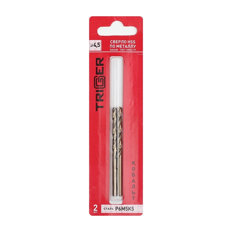 Сверло по металлу Trigger 74245 Кобальт 4,5 мм Р6М5К5 (уп. 2 шт.)