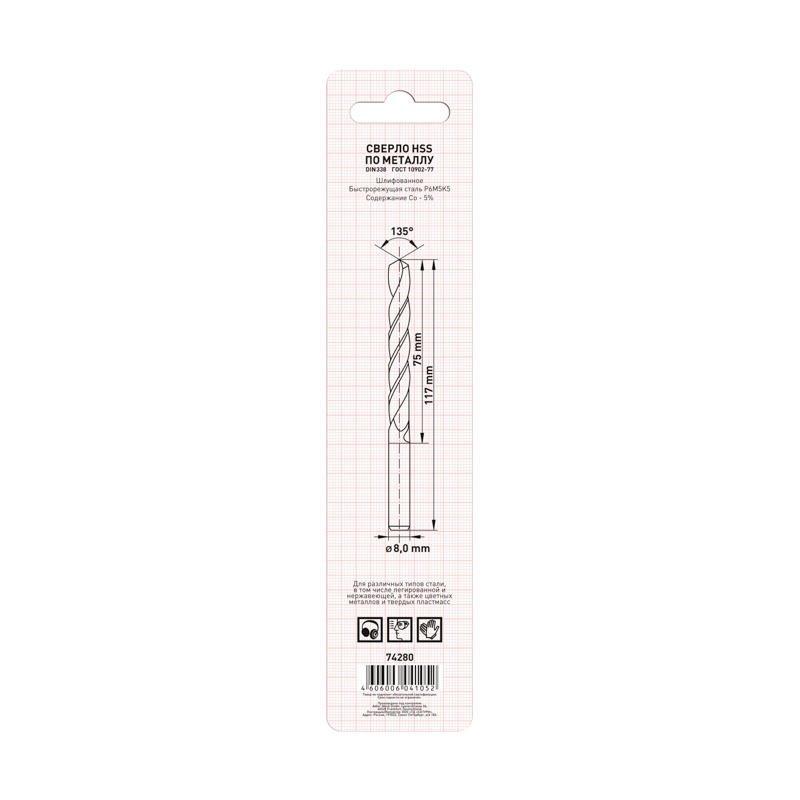 Сверло по металлу Trigger 74280 Кобальт 8,0 мм Р6М5К5