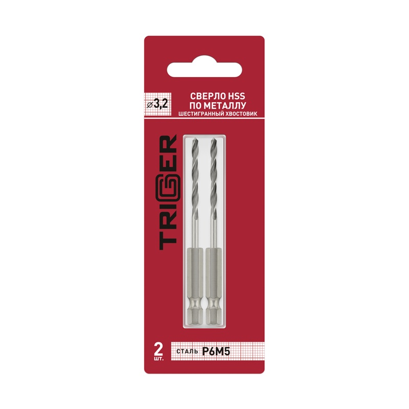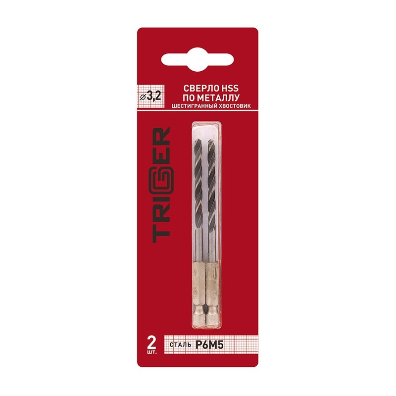 Сверло с шестигр.хв.по металлу Trigger 73432 Р6М5 3,2 мм (уп. 2 шт.)