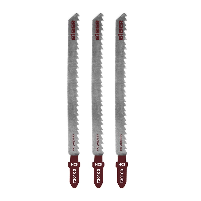 Предназначены для работы с электролобзиком для чистового реза мягкой древесины, ДСП, фанеры, ДВП толщиной 10 — 65 мм. Изготовлены из высокопрочной инструментальной стали. Зубья шлифованные, под свободным углом. Рабочая длина 91 мм. Количество зубьев на 1 дюйм режущей кромки TPI = 8