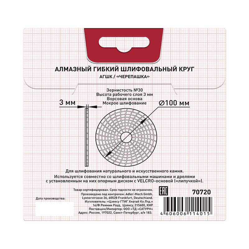 Гибкий шлифовальный круг Триггер 70720 используется совместно со шлифовальными машинами и дрелями с установленным на них опорным диском с VELCRO-основой («липучкой»). Алмазный гибкий круг 100 применяется для шлифования натурального и искуственного камня.