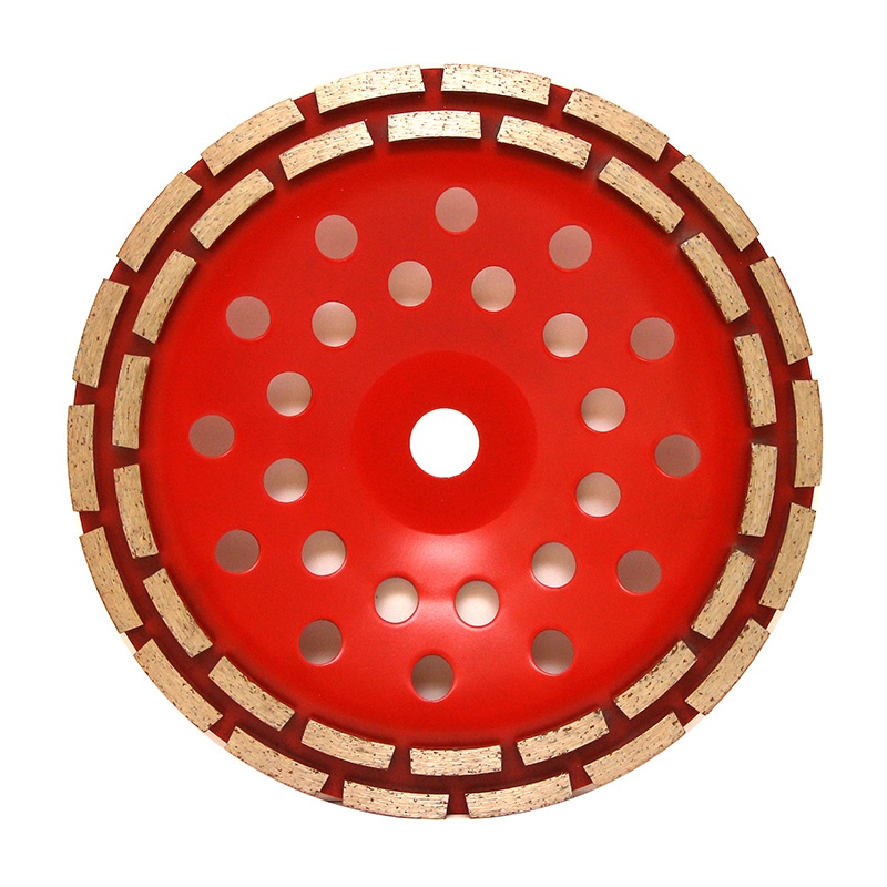 Используется в качестве насадки для УШМ (болгарки) для сухого шлифования и выравнивания бетона, клинкера, натурального камня и других твердых поверхностей. Двухрядное исполнение для грубой очистки поверхности.