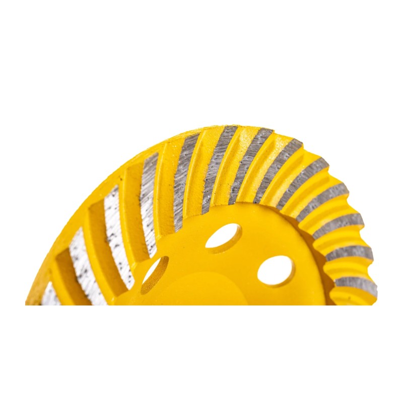 Используется в качестве насадки для УШМ (болгарки) для чистовой обработки бетона, гранита, мрамора и других твердых строительных материалов. Турбо.