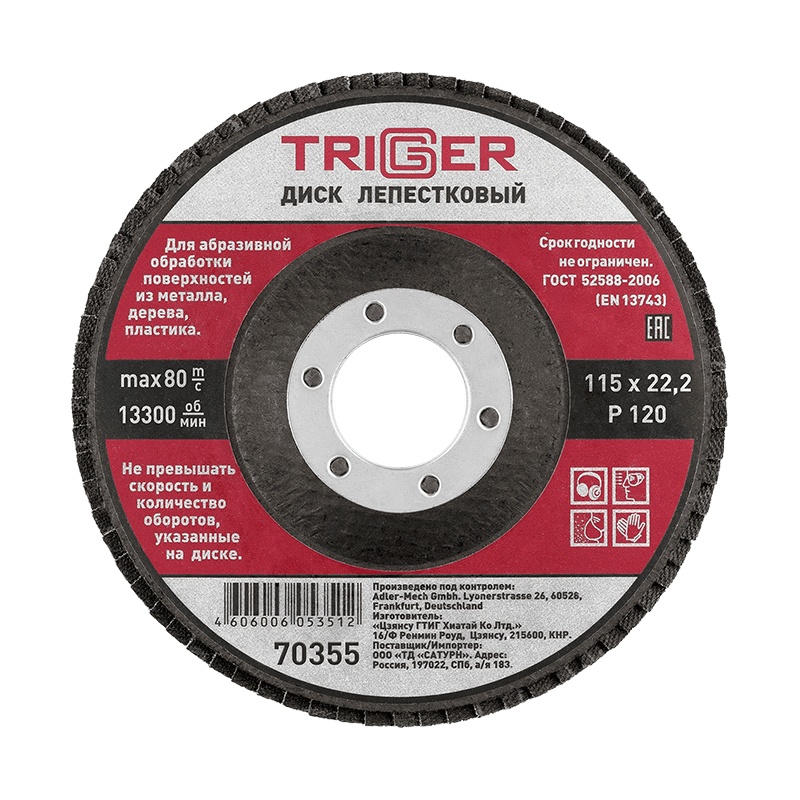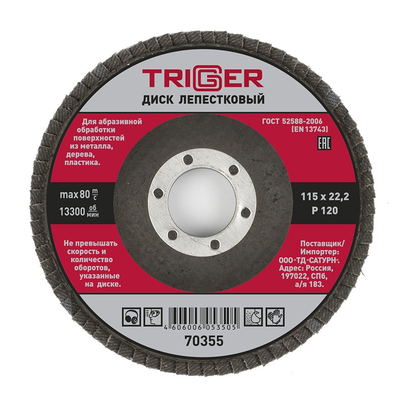 Диск лепестковый Trigger 70355 по металлу 115х22 мм P120