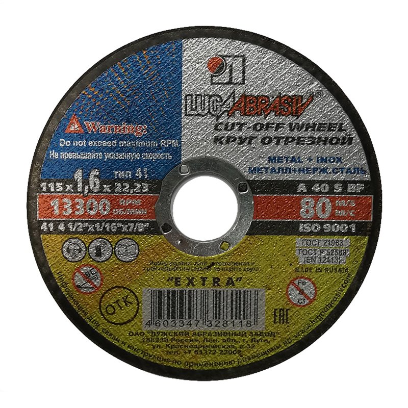 Диск отрезной Луга 115х1,6х22,2 мм по металлу и нерж. стали