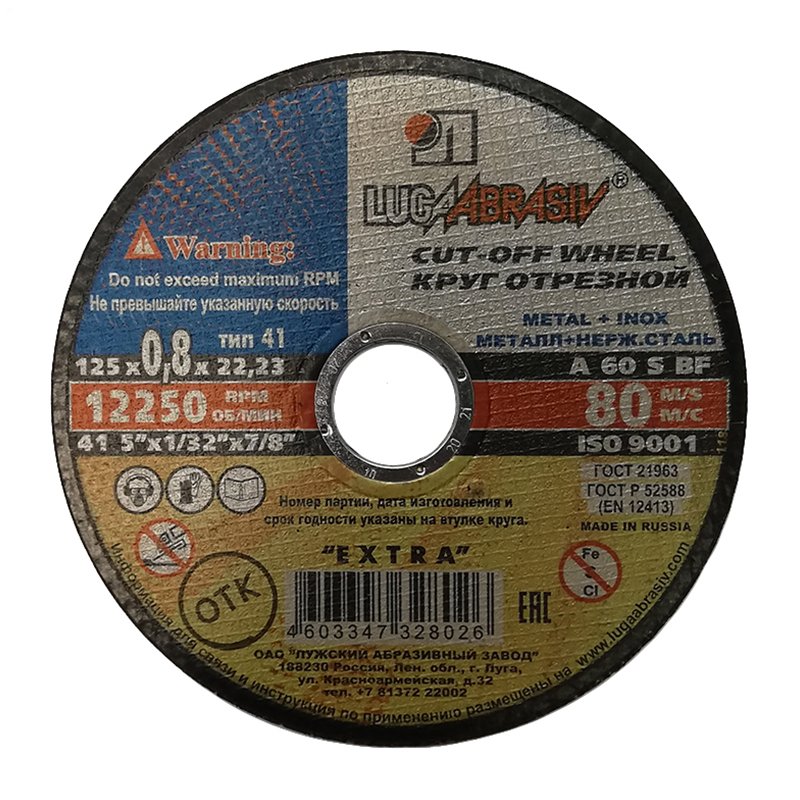 Диск отрезной Луга 125х0,8х22,2 мм по металлу и нерж. стали