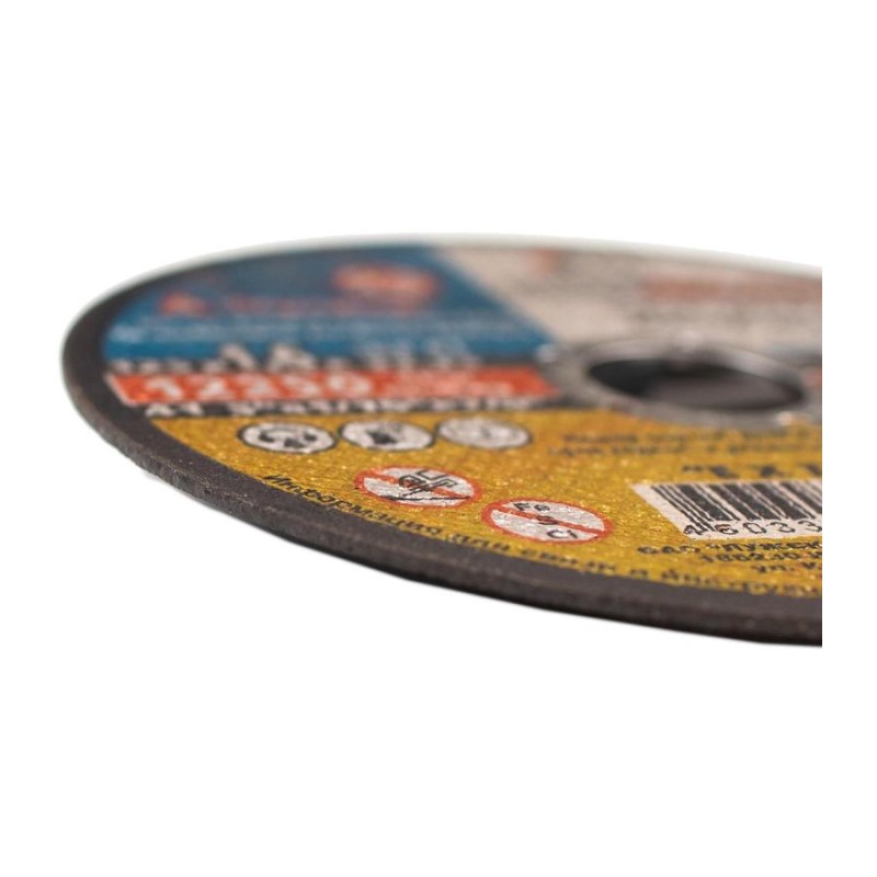 Предназначен для установки на УШМ (болгарку) для резки деталей и конструкций из различных марок стали. Изготовлен на основе бакелитовой связки. Режущие элементы — кристаллы оксида алюминия. Круг армирован стекловолоконной сеткой, что обеспечивает ему высокую прочность и безопасность и позволяет работать на высоких скоростях.