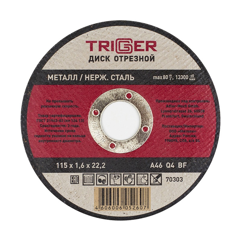 Диск отрезной Trigger 70303 115х1,6х22,2 мм по металлу и нерж. стали