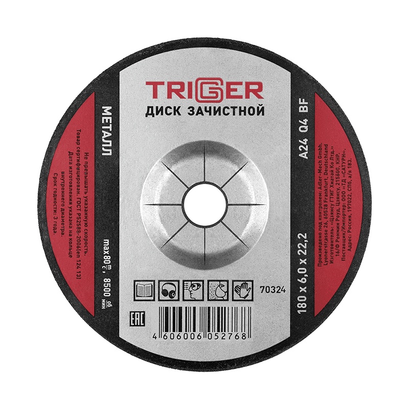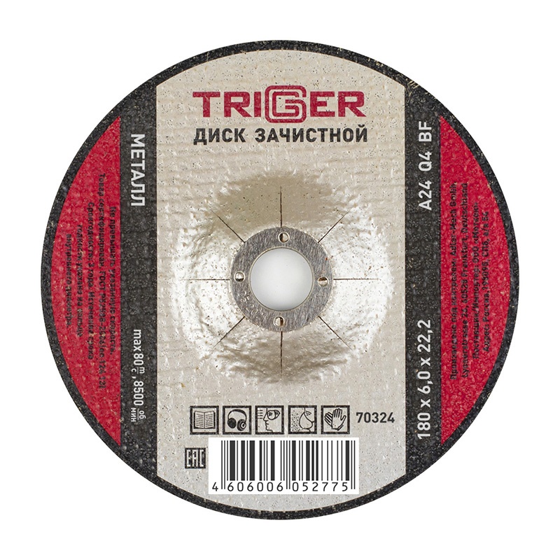 Предназначен для установки на точильные станки для зачистки остатков краски, ржавчины, неровных краев металлических изделий. Абразивный материал — электрокорунд (оксид алюминия). Бакелитовая связка. Три усиленные армирующие сетки обеспечивают высокую прочность, равномерный износ и безопасность диска.