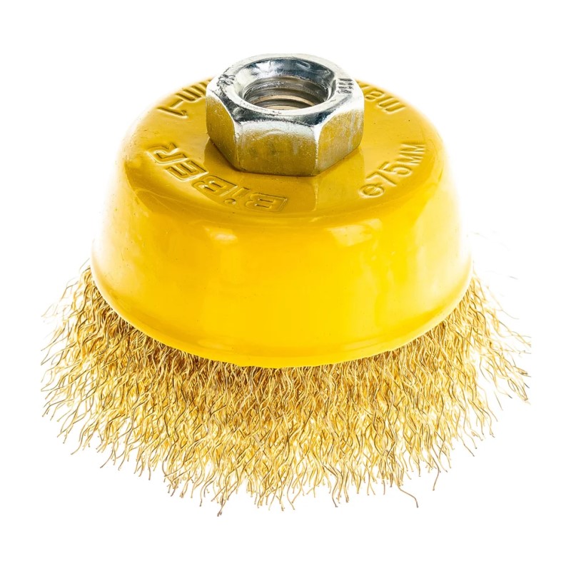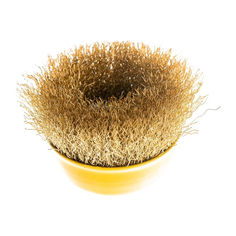 Используется в качестве насадки для УШМ (болгарок) для крацевания поверхностей. Посадочное отверстие — гайка М14. Стальная проволока диаметром 0,3 мм с латунным антикоррозийным покрытием.