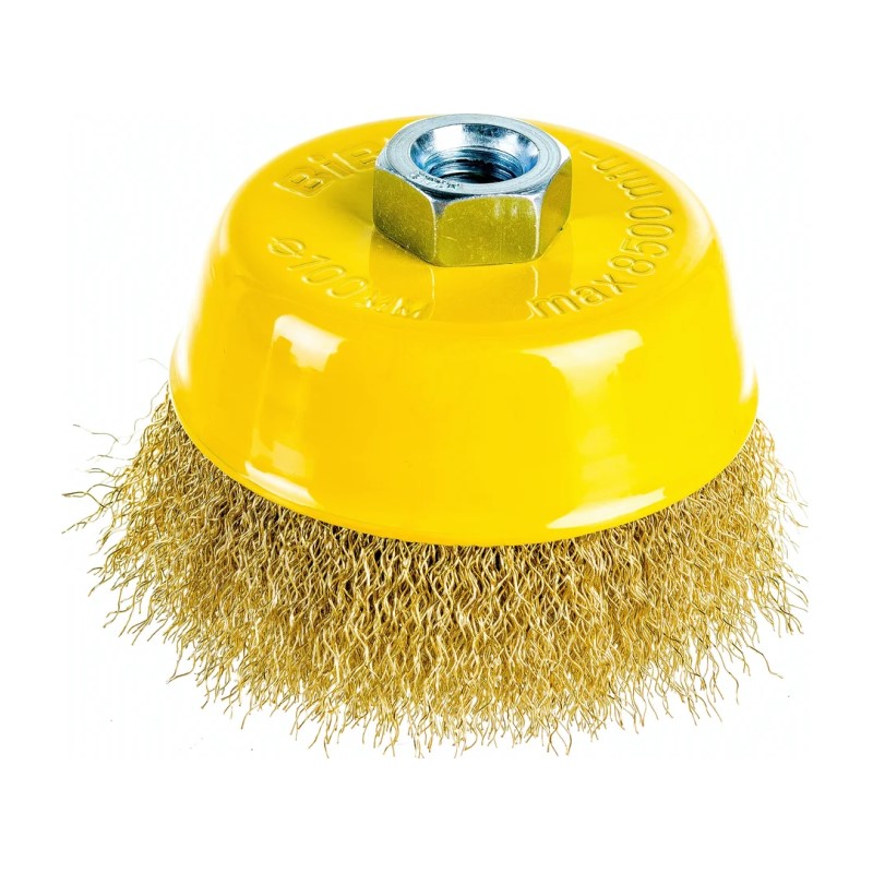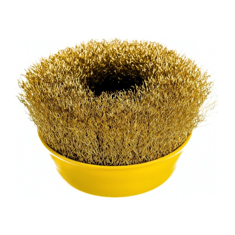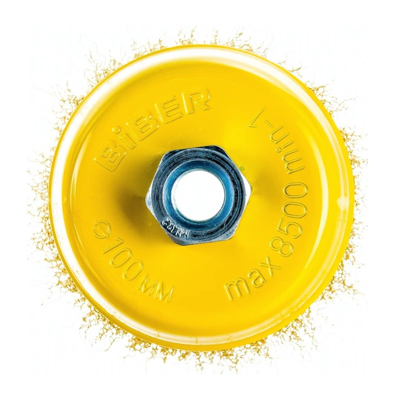 Используется в качестве насадки для УШМ (болгарок) для крацевания поверхностей. Посадочное отверстие — гайка М14. Стальная проволока диаметром 0,3 мм с латунным антикоррозийным покрытием.
