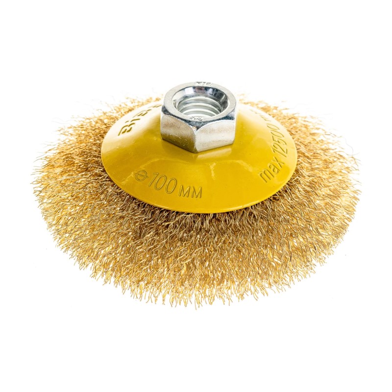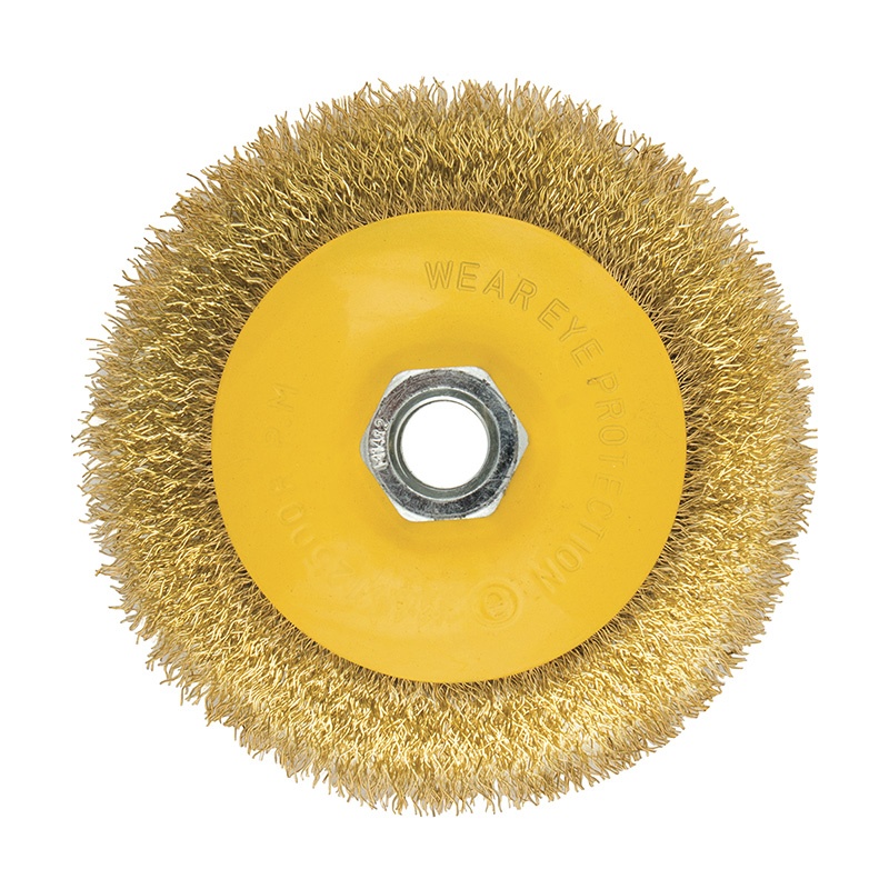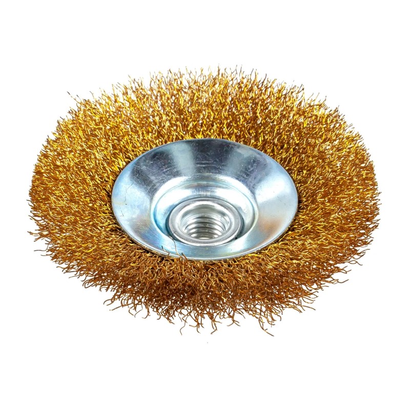 Используется в качестве насадки для УШМ (болгарок) для крацевания поверхностей. Посадочное отверстие — гайка М14. Стальная проволока диаметром 0,3 мм с антикоррозийным покрытием.