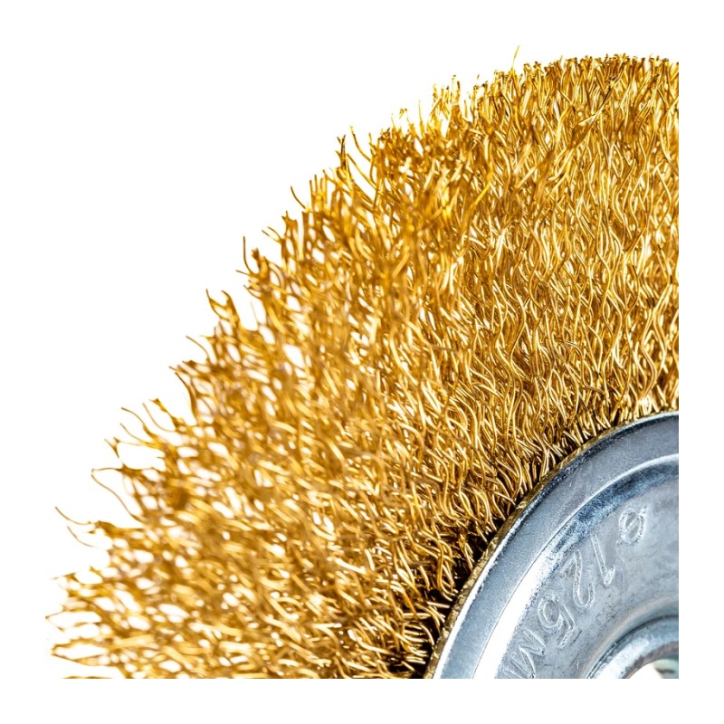 Используется в качестве насадки для электрических станков и УШМ (болгарок) для крацевания поверхностей. Стальная проволока диаметром 0,3 мм с латунным антикоррозийным покрытием. Посадочное отверстие 22,2 мм. В комплект входят переходники для посадочного отверстия диаметром 13, 16 мм.