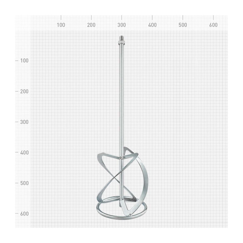 Используется в качестве насадки для строительных миксеров для перемешивания строительных смесей. Направление перемешивания снизу-вверх. Посадочная резьба М14.