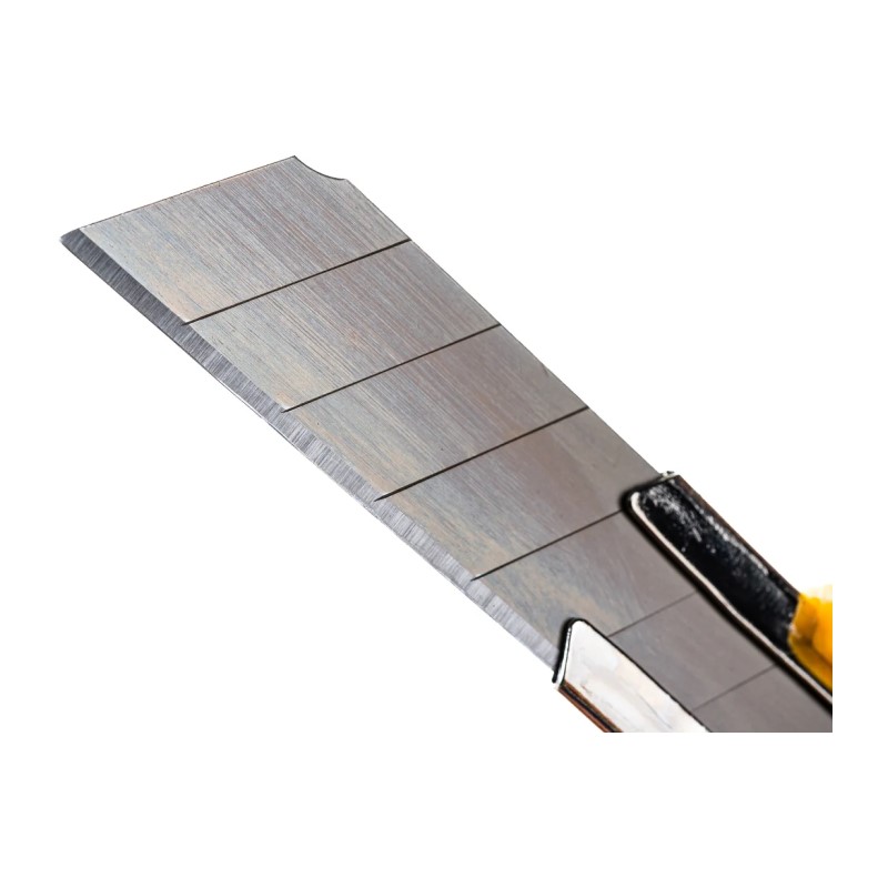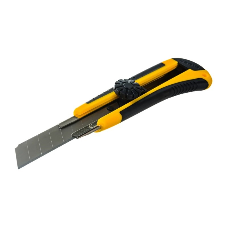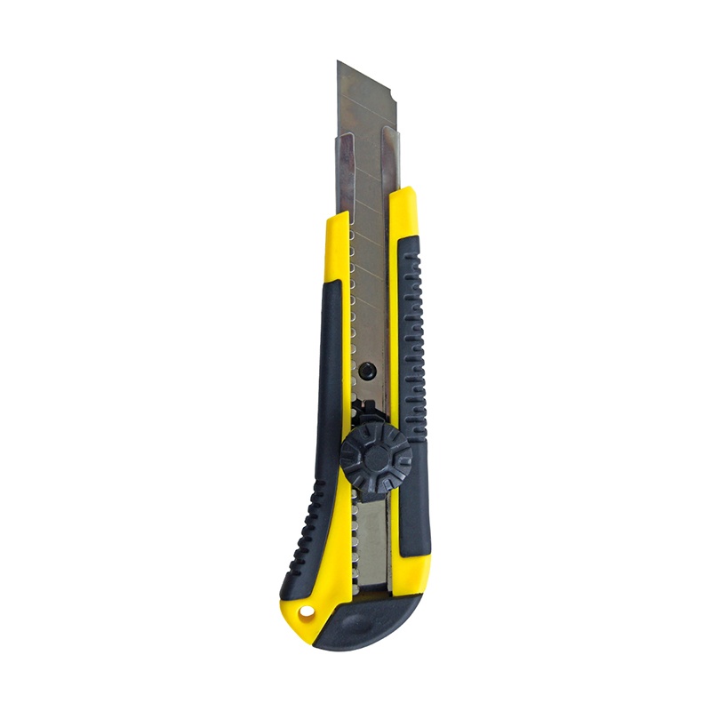 Предназначен для резки бумаги, картона, ткани и пластика. Усиленный обрезиненный корпус. Металлическая направляющая. Оснащен отламывающимся сегментированным лезвием. Усиленный обрезиненный корпус с круглым фиксатором.
