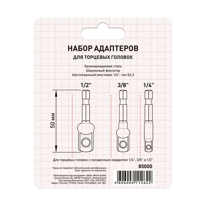 | Размер посадки | 1/4"х50 мм3/8"х50 мм1/2"х50 мм |