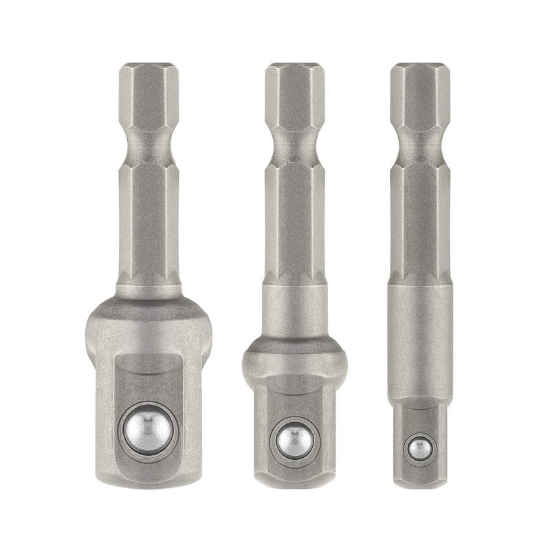 Предназначен для использования торцевых головок с аккумуляторными/сетевыми дрелями и шуруповертами. Хромированные. Шестигранный хвостовик 1/4″Е. Длина 55 мм