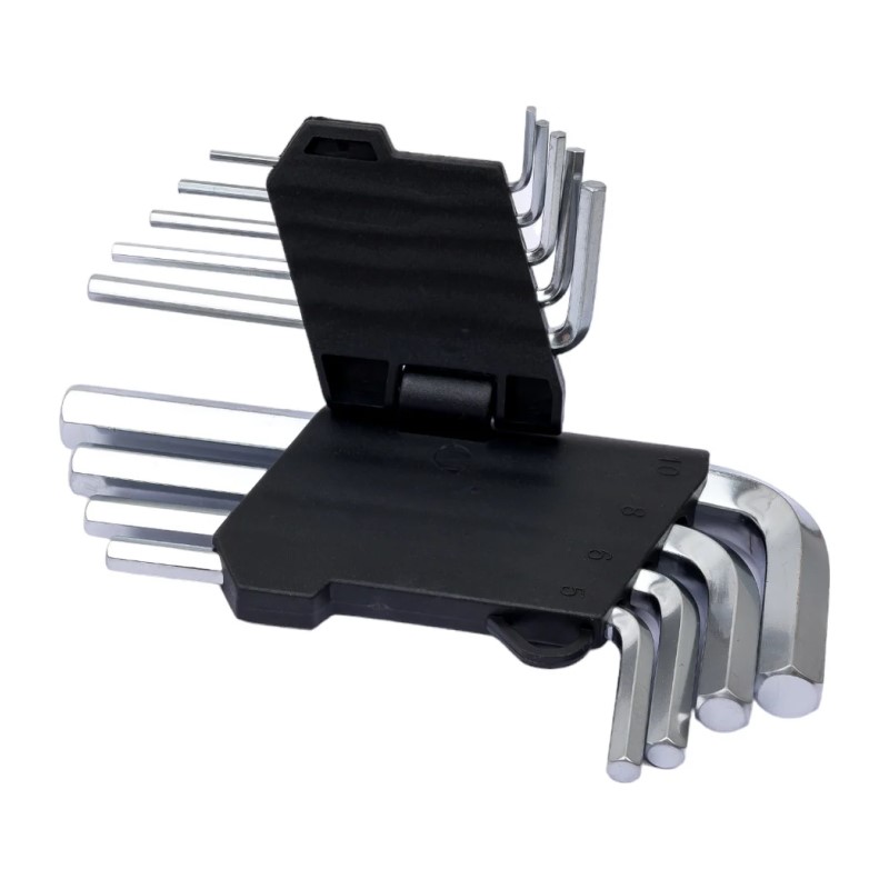 Предназначены для винтов и шурупов с внутренним шестигранным шлицем. Хромованадиевая сталь. Набор 9 предметов: HEX 1,5х50; HEX 2х55; НЕХ 2,5х62; НЕХ 3х70; НЕХ 4х77; НЕХ 5х80; НЕХ 6х90; НЕХ 8х102; НЕХ 10х115 мм