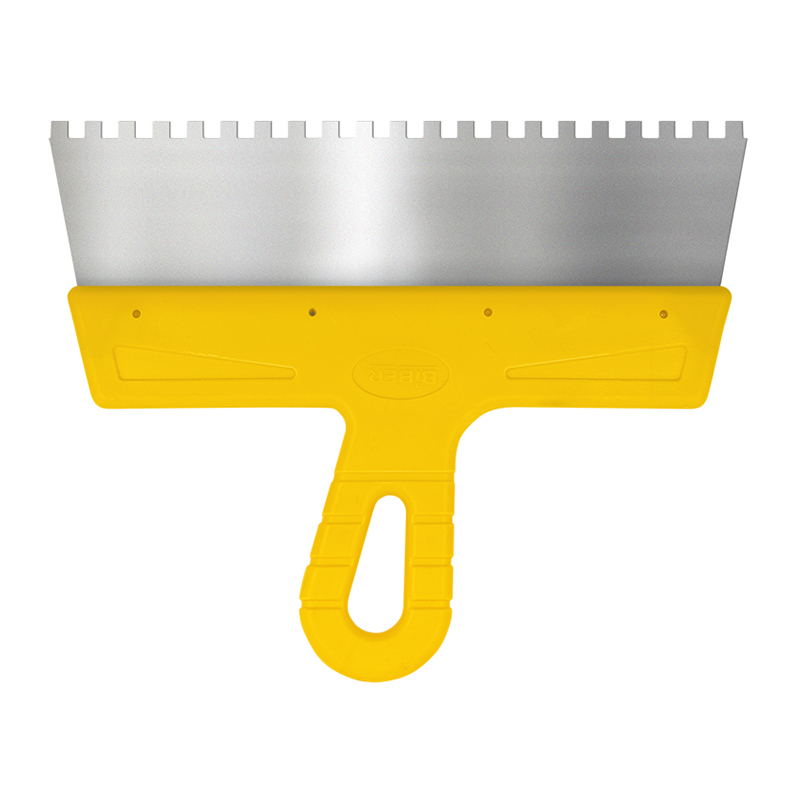 Предназначен для облицовочных работ. Полотно из нержавеющей стали. Пластмассовая рукоятка.