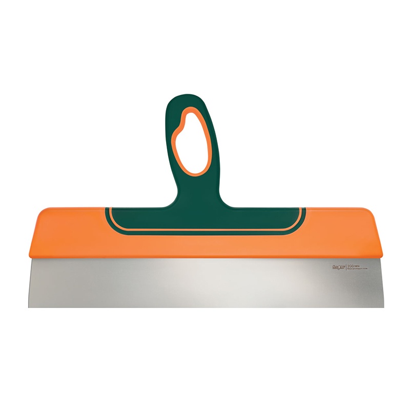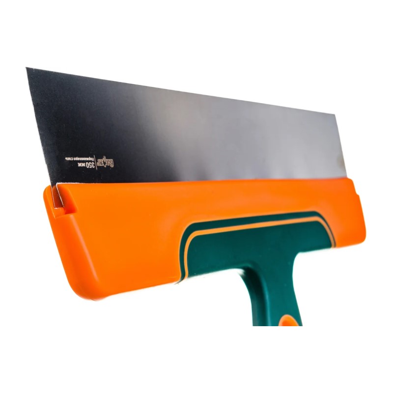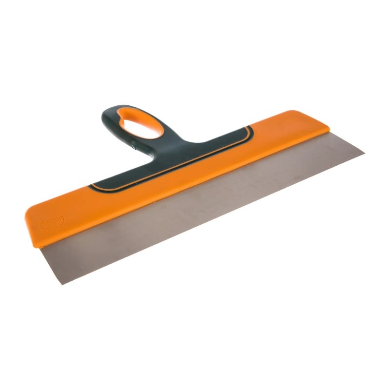 Предназначен для нанесения смесей. Полированное полотно из нержавеющей стали. Обрезиненная двухкомпонентная противоскользящая рукоятка.