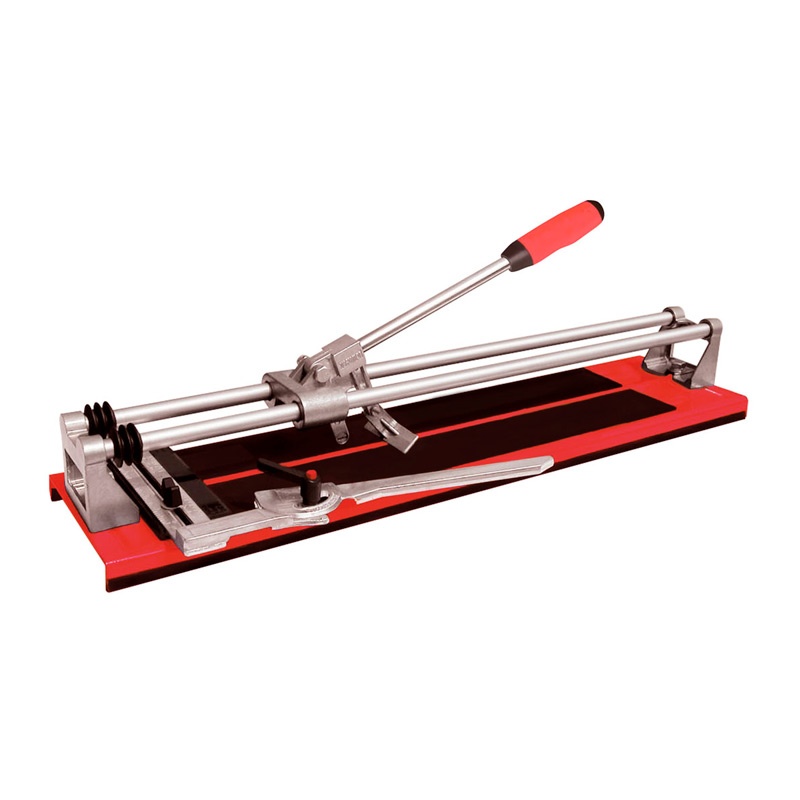 Предназначен для керамической плитки и керамогранита максимальной толщиной 15 мм. Усиленная конструкция. Прокатное основание толщиной 2,5 мм на резиновой подошве с продольным и поперечными ребрами жесткости повышает устойчивость плиткореза при работе. Оснащен обрезиненной эргономичной противоскользящей рукояткой. Цельнометаллический рычаг диаметром 14,2 мм. Цельнометаллические направляющие диаметром 16 мм с износостойким хромированием. Оснащен подшипником для обеспечения высокой точности реза и плавного хода каретки, выносным поворотным угольником с градуированной шкалой. Твердосплавный режущий ролик является сменным элементом. Размер ролика 22 х 6 х 2 мм.