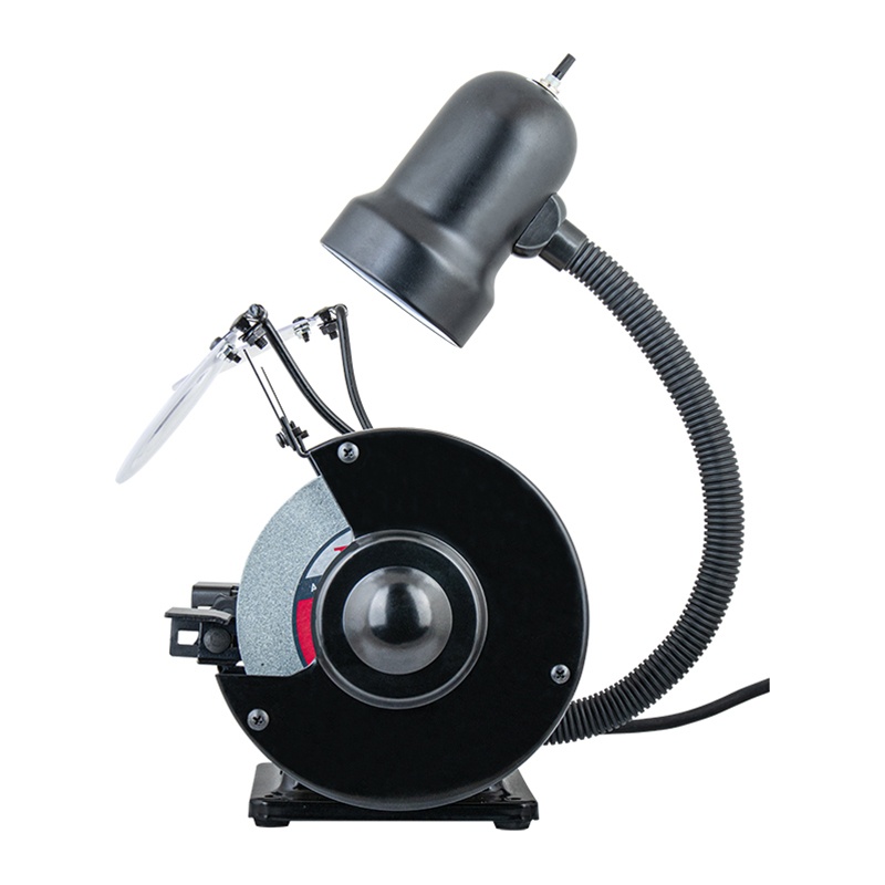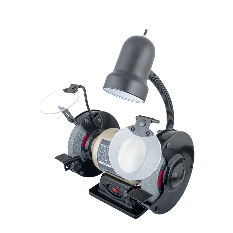 Предназначен для заточки режущего инструмента. Позволяет затачивать крупный ручной инструмент: топоры, колуны, лопаты и тяпки. Оборудован плафоном на гибком штативе для яркого освещения рабочей зоны без риска повреждения лампы при работе. Крупноформатные защитные экраны. Защитный экран с увеличительным стеклом для работы с мелкими деталями. Плафон подсветки рабочей зоны с патроном E27 и выключателем. Возможность стационарного крепления к верстаку. Материал корпуса сталь. Шнур 2 м, резиновый морозостойкий.