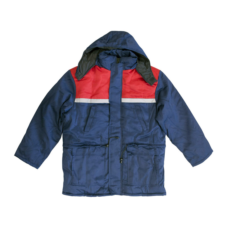 Используется в качестве защитной спецодежды при проведении работ в условиях пониженных температур. Куртка на пуговицах из смесовой ткани Балтекс плотностью 260 г/м2 (65% хлопок, 35% синтетика), темно-синего цвета с кокеткой красного цвета. Отложной воротник. Рукава-манжет на пуговицах. 4 накладных кармана: верхние с клапаном на липучке, нижние с косым входом. Пояс с двух сторон на резинке.