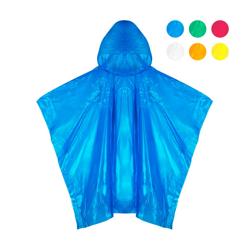 Предназначен для защиты от атмосферных осадков. Изготовлен из полиэтилена 15 микрон. Пропаянный. Дождевик-пончо. Универсального размера. Возможные цвета: зеленый, желтый, красный, синий, оранжевый, белый.