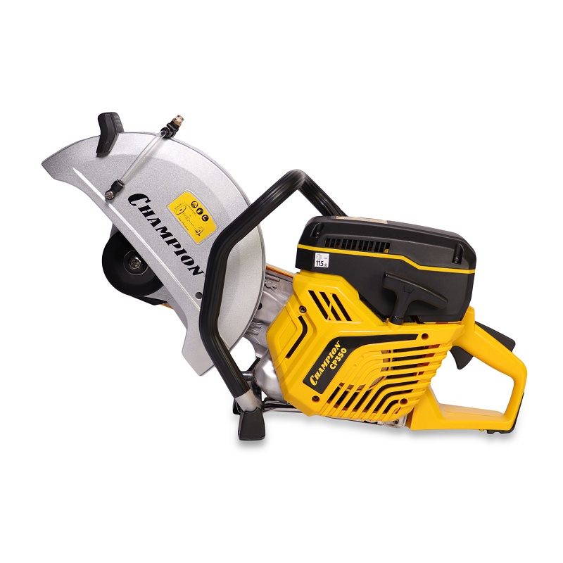 Бензорез Чемпион CP350 мощностью 3,5 кВт предназначен для мокрой и сухой резки стали, бетона и асфальта. На инструмент устанавливается диск диаметром 350 мм (в комплект не входит) с посадочным диаметром 20 либо 25,4 мм.