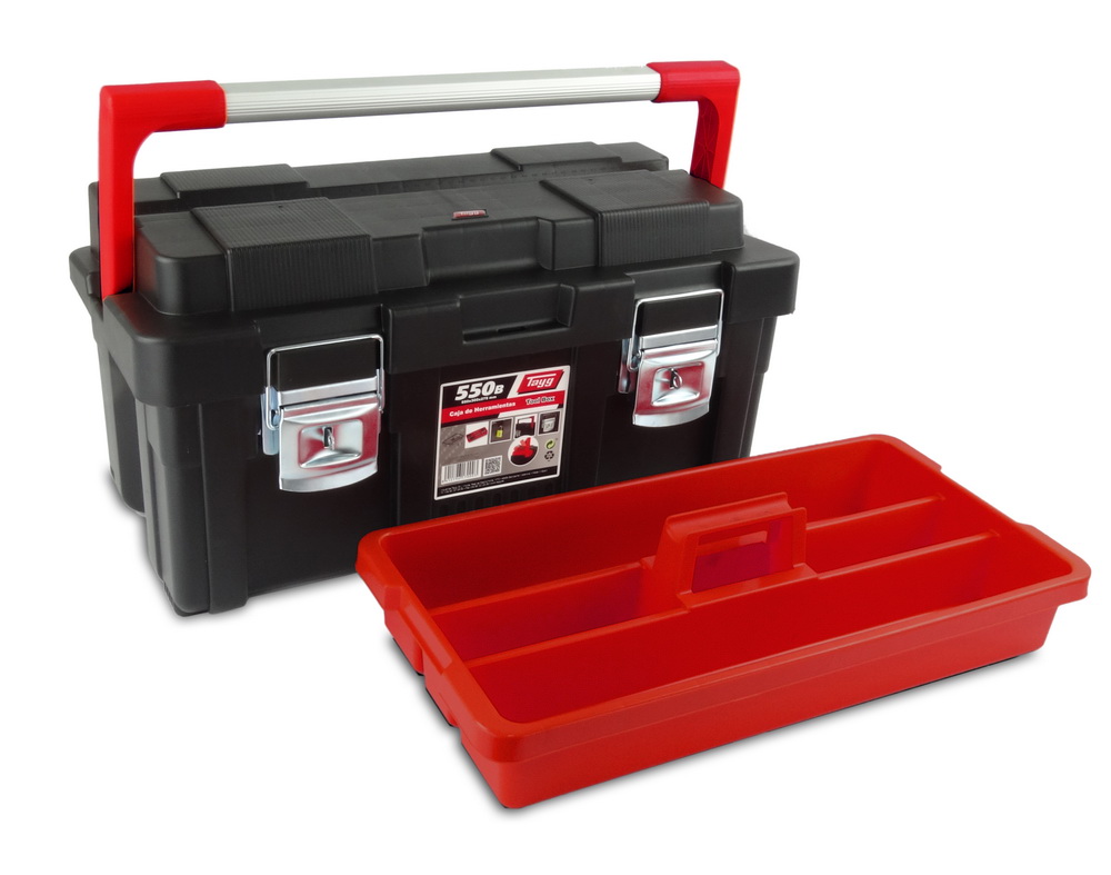 Ящик для инструмента, размер 550х300х275мм. Материал = полипропилен. С внутренним лотком. Стальные замки, рукоятка из алюминия.