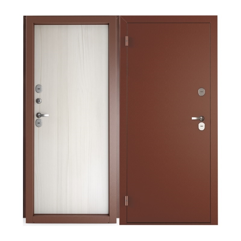 Дверь комплектуется 2 замками: это сувальдный замок Гардиан 30.11 четвертого класса безопасности и сувальдный замок Промет 30.01 третьего класса безопасности, а также алюминиевой дверной ручкой Inspector 93 в цвете хром. Применение пенополистирола в качестве внутреннего наполнителя, обеспечивает низкую теплопроводность и высокую звуконепроницаемость. Дверь покрыта износостойкой полимерно-порошковой краской имеет три контура уплотнения, которые обеспечивает защиту от сквозняков и шума. Внутренняя сторона двери выполнена в виде МДФ панели.