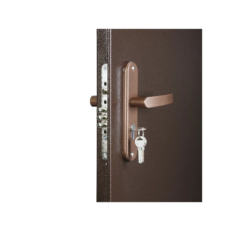 Предназначена для установки в жилых и общественных зданиях в качестве входной двери как внутри помещения, так и снаружи. Внешняя накладка из металла в цвете медный антик. Внутренняя – ХДФ, итальянский орех, дуб беленый, венге модерн. Укомплектовано цилиндровым замком BORDER 2 класс. Замок размещается в пенополистирольный карман, что позволяет сохранить тепло и звукоизоляцию полотна в замковой зоне. Входная дверь Спец ПРО BMD покрыта износостойкой полимерно-порошковой краской имеет один контур уплотнения, который обеспечивает защиту от сквозняков и шума.