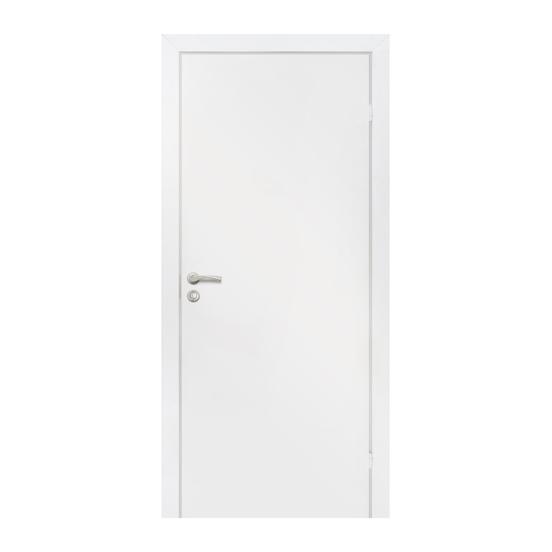 Предназначено для установки в межкомнатный дверной блок. Полотно дверное с притвором глухое, покрыто краской УФ-отверждения. Каркас — массив сосны и(или) МДФ. Сотовое картонное заполнение. Поверхность — плита ХДФ. Установлены 2 резьбовые втулки с винтом для крепления петель. Выполнена фрезеровка под установку замка, но замок не установлен.