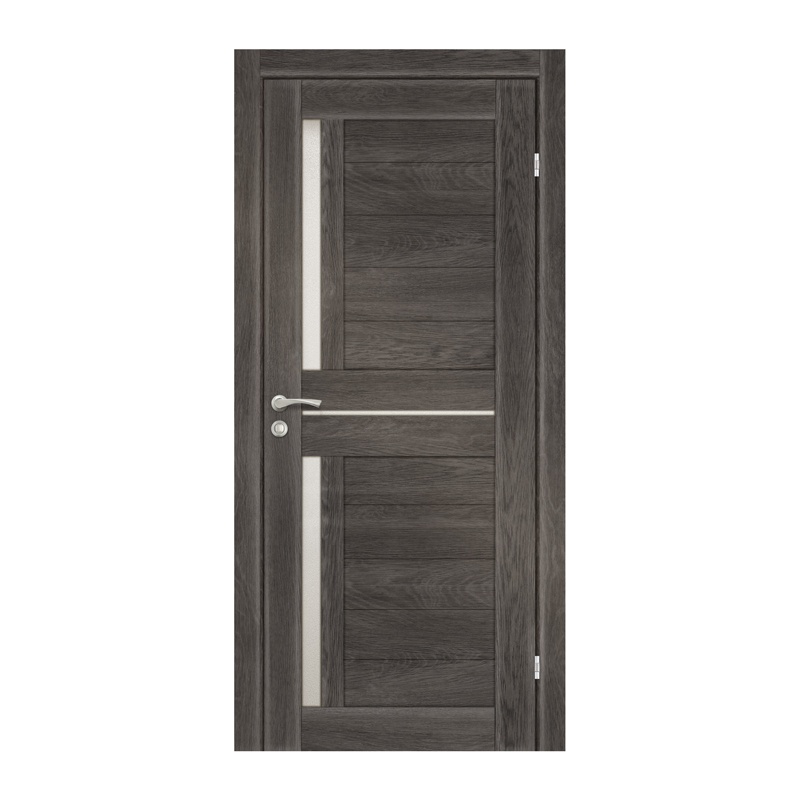 Предназначено для установки в межкомнатный дверной блок. Дверное полотно без притвора остекленное. Царговая конструкция выполнена из массива сосны и(или) МДФ. Поверхность — МДФ с покрытием экошпон. Поставляется без фурнитуры.