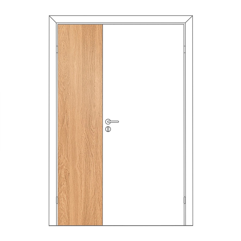 Предназначено для комплектации полуторного дверного блока. Ответная часть дверного полотна без притвора глухая, ламинированная. Каркас — массив сосны и(или) МДФ. Сотовое картонное заполнение. Поверхность — плита ХДФ. Установлены ответная планка замка типа 0028, два врезных шпингалета, отфрезерованы посадочные места для крепления петель.