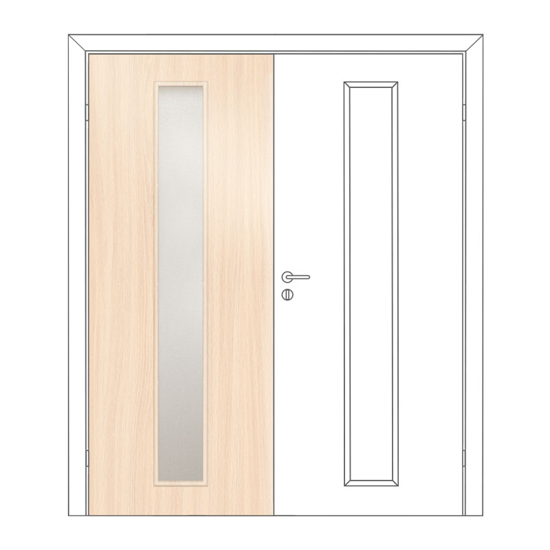 Предназначено для комплектации полуторного или двупольного дверного блока. Ответная часть дверного полотна без притвора толщиной 35 мм, со стеклом, ламинированное. Каркас — массив сосны/МДФ. Сотовое заполнение. Поверхность — плита ХДФ. Кашировано финиш-пленкой на бумажной основе. В дверное полотно установлены: ответная планка замка типа 0028, два врезных шпингалета, отфрезерованы посадочные места для крепления петель.