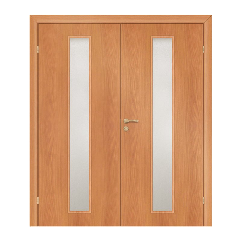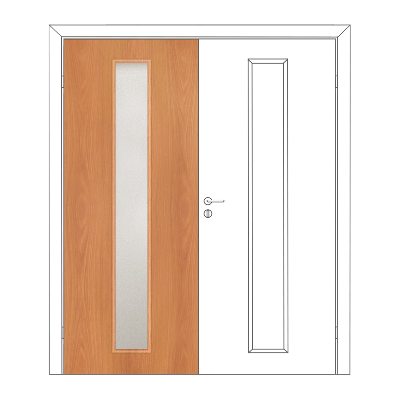 Предназначено для комплектации двупольного дверного блока. Ответная часть дверного полотна без притвора остекленная, ламинированная. Каркас — массив сосны и(или) МДФ. Сотовое картонное заполнение. Поверхность — плита ХДФ. Установлены ответная планка замка типа 0028, два врезных шпингалета, отфрезерованы посадочные места для крепления петель.