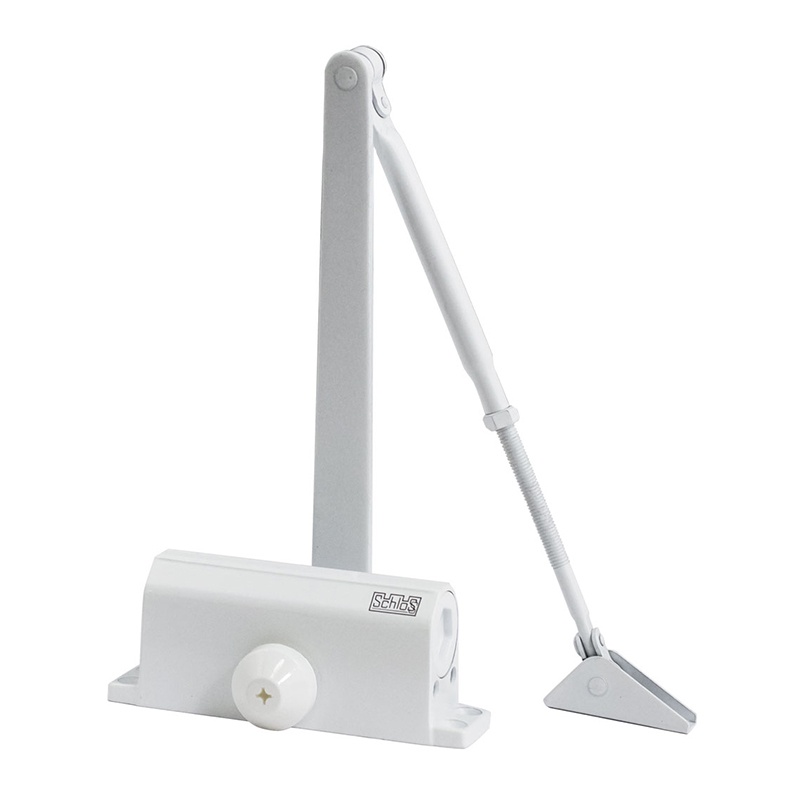 Предназначен для автоматического плавного закрытия наружных и межкомнатных дверей. Рассчитан на двери от 25 до 45 кг (максимальный вес двери — 60 кг), шириной до 900 мм. Максимальный угол раскрытия двери — 120 и 140 градусов. Категория силы закрывания (EN1154) — 2. Комплектация: дверной доводчик — 1 шт., складной рычаг — 1 шт., винт с шайбами — 1 шт., декоративная заглушка на шпиндель — 1 шт., шуруп для крепления доводчика к деревянной двери — 4 шт., шуруп для крепления складного рычага к деревянной двери — 2 шт., винт для крепления доводчика к металлической двери — 4 шт., винт для крепления складного рычага к металлической двери — 2 шт.