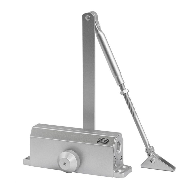 Предназначен для автоматического плавного закрытия наружных и межкомнатных дверей. Рассчитан на двери от 40 до 65 кг (максимальный вес двери — 75 кг), шириной до 950 мм. Максимальный угол раскрытия двери — 120 и 180 градусов. Категория силы закрывания (EN1154) — 3. Комплектация: дверной доводчик — 1 шт., складной рычаг — 1 шт., винт с шайбами — 1 шт., декоративная заглушка на шпиндель — 1 шт., шуруп для крепления доводчика к деревянной двери — 4 шт., шуруп для крепления складного рычага к деревянной двери — 2 шт., винт для крепления доводчика к металлической двери — 4 шт., винт для крепления складного рычага к металлической двери — 2 шт.