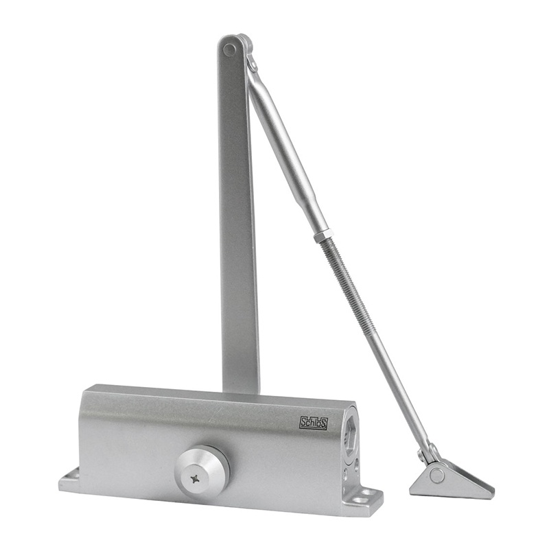 Предназначен для автоматического плавного закрытия наружных и межкомнатных дверей. Рассчитан на двери от 80 до 140 кг, шириной до 1500 мм. Максимальный угол раскрытия двери — 120 и 180 градусов.